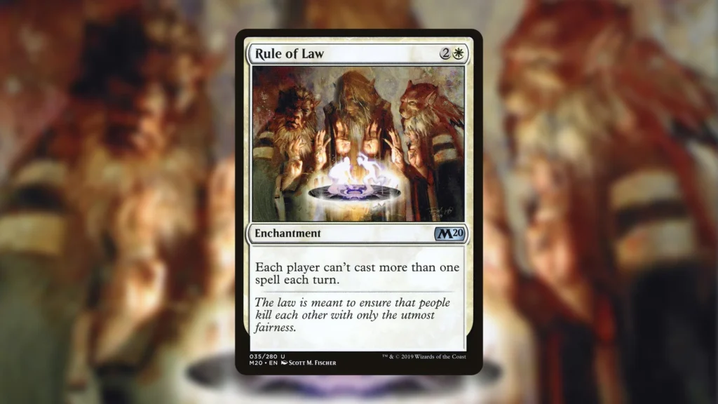 This might not be the most fun way to play Commander, but Rule of Law does shut down multiple popular Commanders that may be terrorizing your playgroup. The card is notably very effective against Vivi Ornitier Commander decks, as well as Y’shtola, Night’s Blessed and Ms. Bumbleflower.
