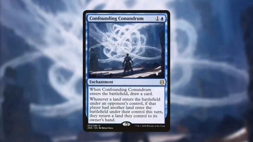 For two mana, Confounding Conundrum punishes any deck that wants to play multiple lands in a turn. Conundrum also replaces itself on entry, which takes away the card cost of playing the card in your deck.