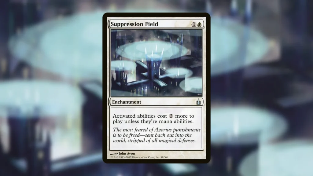 Similar to the other budget options on his list, despite only having one printing, Suppression Field is still available for just under a dollar.