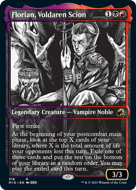 Number 4 is Florian, Voldaren Scion. Decks with Florian at the helm definitely wants to be aggressive in nature, trying to take advantage of Florian’s effect. You also probably want to be playing a good amount of cheap removal or burn to clear the way for your creatures.