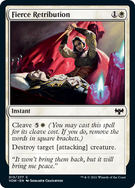 One of the few cards with cleave to really land from Crimson Vow, Fierce Retribution has been a decent addition and it’s a great cheap removal for Mono-White that can take opponents by surprise.