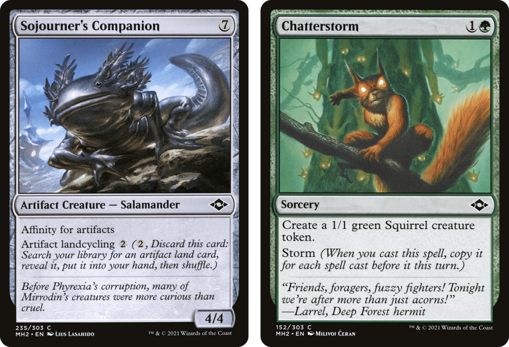 However, Modern Horizons is looking to add to the ban list with Chatterstorm and Sojourner’s Companion are leaving the format with immediate effect. Both of these cards have skewed Pauper into an unpopular format, to the point where players registered 60 basic lands in a Pauper Preliminary event. After the event, Wizards of the Coast responded that they were looking to update the Banned & Restricted list later this week.