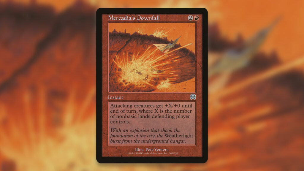 Of all the MTG Commander sleepers on this list, Mercadia’s Downfall is the biggest sleeper of them all. A sneaky instant-speed pump spell for three mana, Mercadia’s Downfall is commonly enough to end games on the spot. As long as you have a decent number of creatures attacking, its not uncommon for them to get seven or more power as the game goes on. Multicolor Commander decks are not in the habit of playing a lot of Basic Lands, and Mercadia’s Downfall takes advantage of that.