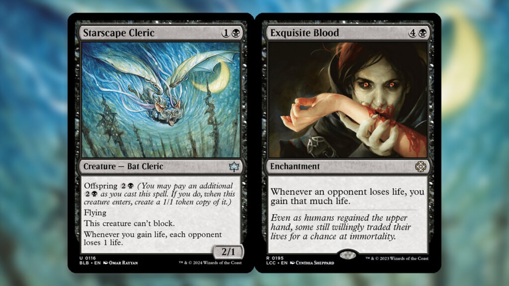 Exquisite Blood infinite combos are nothing new to the world of MTG. Sanguine Bond is the traditional card that goes infinite with Exquisite Blood, creating a feedback loop between the two abilities. Life loss causes life gain, and life gain causes life loss. This will continue until something dies.