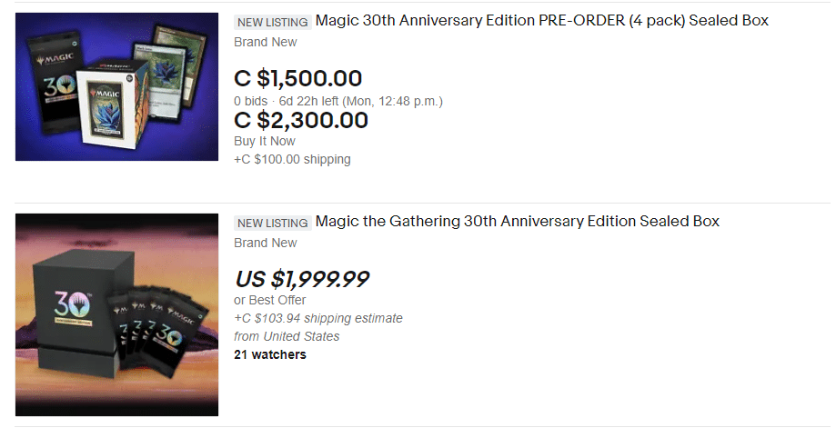 The early appearance of a few 30th Anniversary Edition on eBay may help to contest that. Things are still very recent, but a few sellers are already popping up asking for as much as twice what the original 30th Anniversary Edition sold for. As of this point, no resold 30th Anniversary Edition packs have been sold for a significant price.