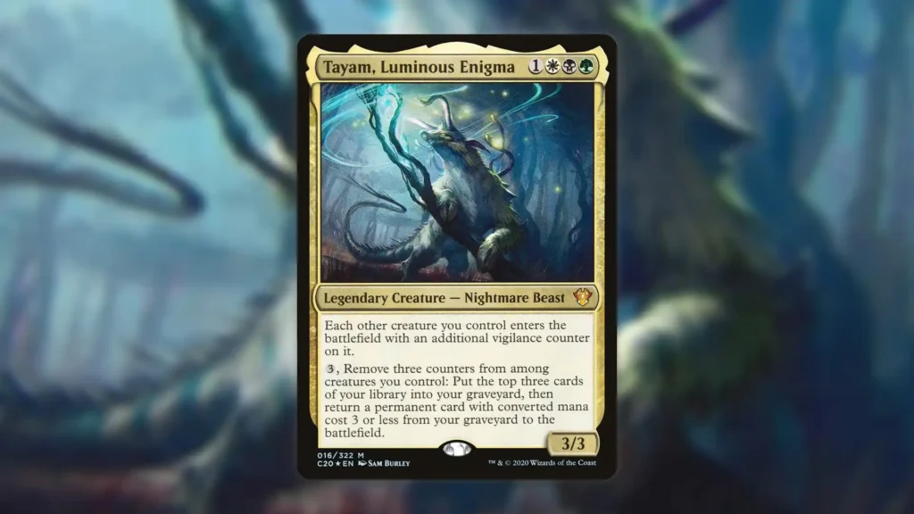 As impactful as Abigale can be in the command zone, it can still make a difference in the 99 of a handful of different Commander decks. Given that Abigale costs only two mana and specifically puts three counters on any of your other creatures, it serves as both an enabler for Tayam, Luminous Enigma and a card to resurrect with Tayam’s activated ability. Meanwhile, Abigale makes for a great creature to play prior to Raffine, Scheming Seer, since it’s hard to block and wears +1/+1 counters well.