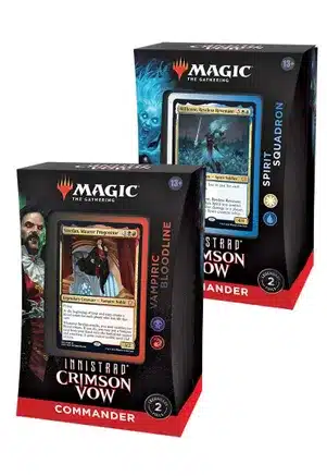 First up is a pretty nice easy entry into the game, the Innistrad: Crimson Vow commander precon decks. These are great ways to get a friend or family member into Magic, and are pretty sweet decks even for veteran players. This is the set of 2, which can be had for around $60 USD.