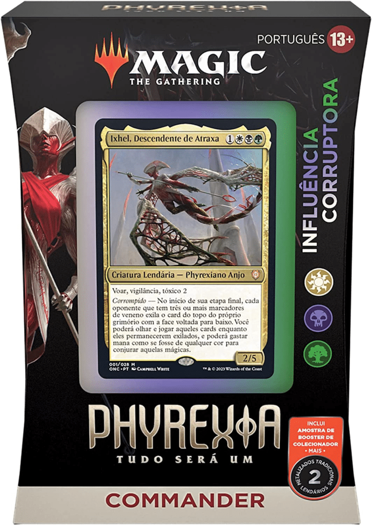 Pictured above is the first of two Phyrexia: All Will Be One Commander decks. Both of these have accidentally been leaked on the Bazillion Amazon site, so they may need a tad bit of translation. The following translations are provided by some Redditors from the main thread discussing these leaks: