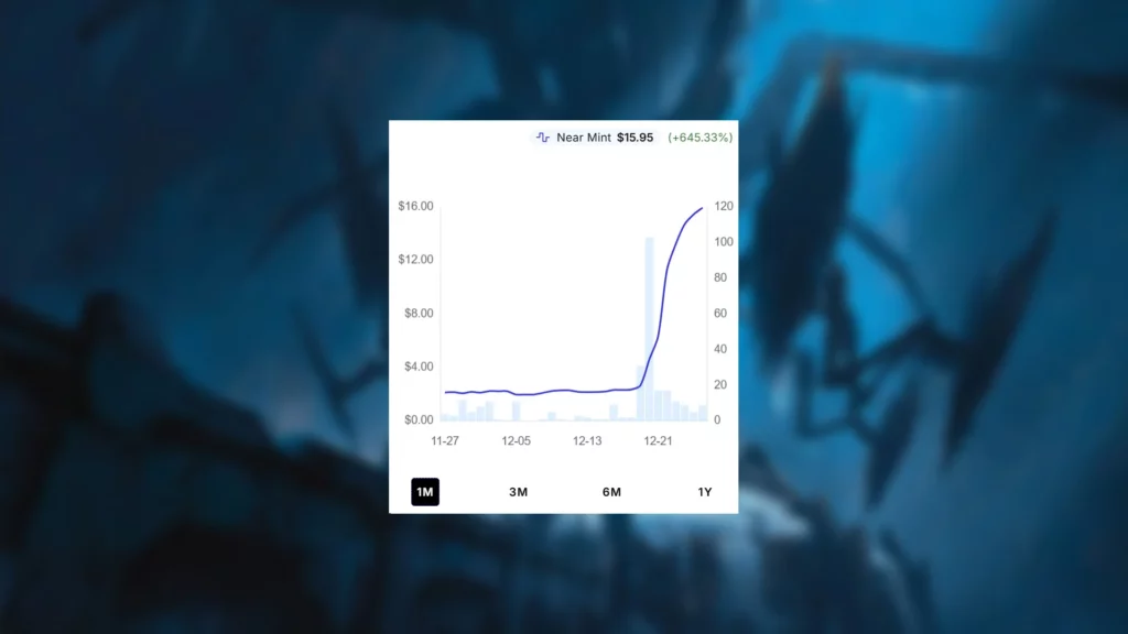 After the banlist announcement for Modern on the 16th, Yggdrasil, Rebirth Engine started seeing a spike almost immediately after. Rising in price from $2.14 to $15.95, Yggdrasil became a rather expensive card overnight. This is directly due to the newfound demand for the card caused by Modern but, as a reminder, the card only has one printing in an extremely underopened set. Anything that has seen a smidgen of demand from the Assasin’s Creed Universes Beyond set has spiked thanks to a lack of supply. Yggdrasil, Rebirth Engine is a Mythic Rare, making it even more difficult to acquire.