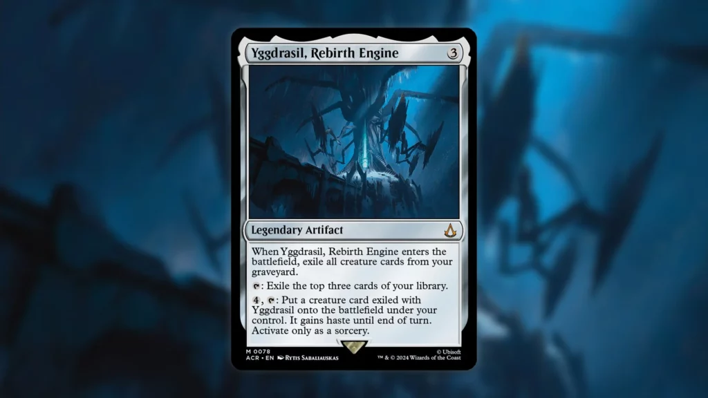One of the first things I wanted to try after MTG Modern’s ban announcement was Yggdrasil, Rebirth Engine. Yggdrasil isn’t an unknown card, but it wasn’t a Modern card prior to the bans. The card did see play in Legacy Show & Tell as another way to cheat in gigantic monsters. Since a similar deck existed in the Modern format, and Assassin’s Creed is indeed Modern legal, someone was bound to play it eventually. Turns out, the card is very powerful.