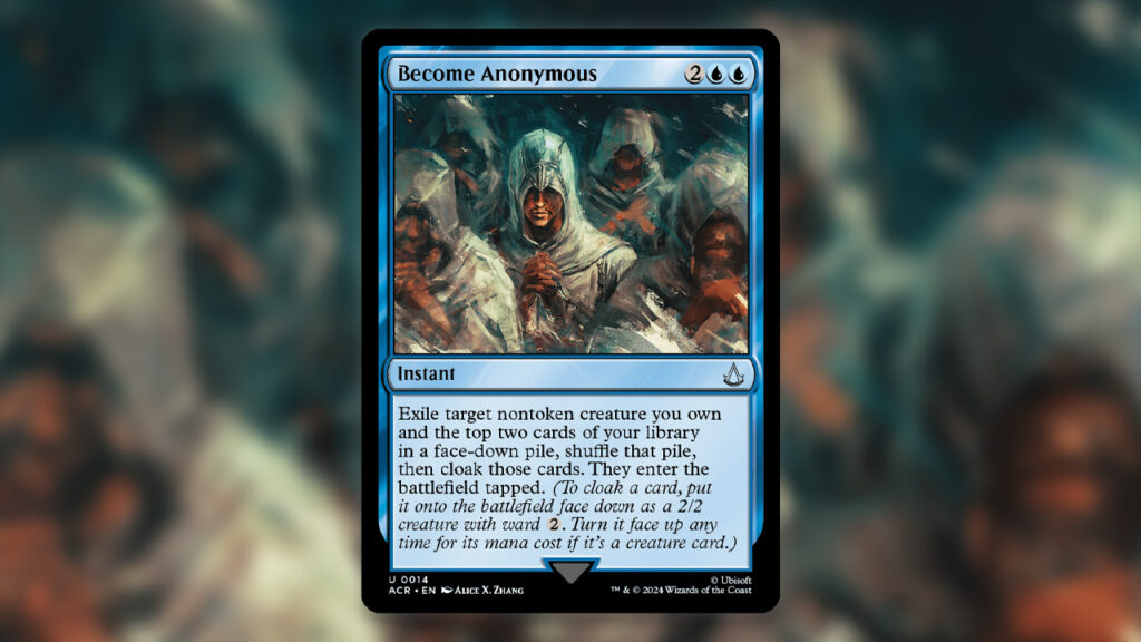 Become Anonymous really feels like the Magic version of Magical Hats. If you want to protect one of your key creatures, maybe your Commander, for example, Become Anonymous can Cloak your creature with your top two cards, creating three bodies in the process.