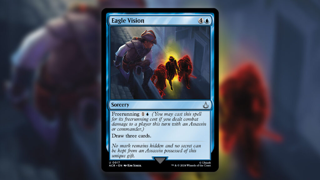 Eagle Vision shows off the power of the Freerunning alternate casting cost present in the Assassin’s Creed expansion. For reference, you get to use a Freerunning casting cost when you deal combat damage with an Assassin or a Commander this turn.