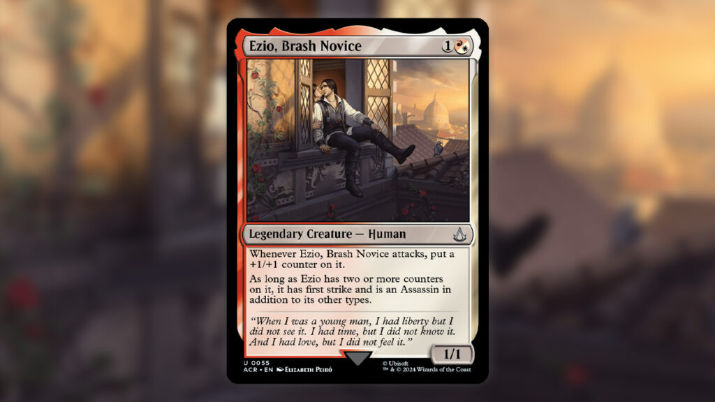 Ezio, Brash Novice is not really a card players will be interested in unless you have some deeper synergies with it. Counters matter decks or Assassin Typal decks could want Ezio, but this really does just feel like a powerful Limited uncommon. Sadly, there is no Limited format with this set, so they just end up feeling a bit meh.