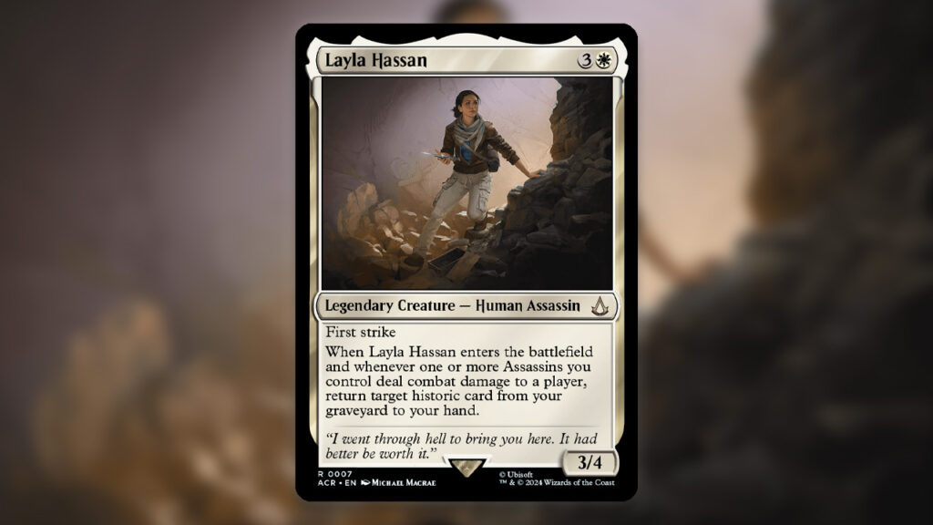 Layla Hassan feels like a Historian. In a deck that utilizes Assassins, Layla can represent a lot of graveyard recursion. She can trigger herself in both instances, which is quite interesting. As long as you have a lot of Historic targets, Layla essentially functions as an over costed Eternal Witness that can keep creating value even after it enters.
