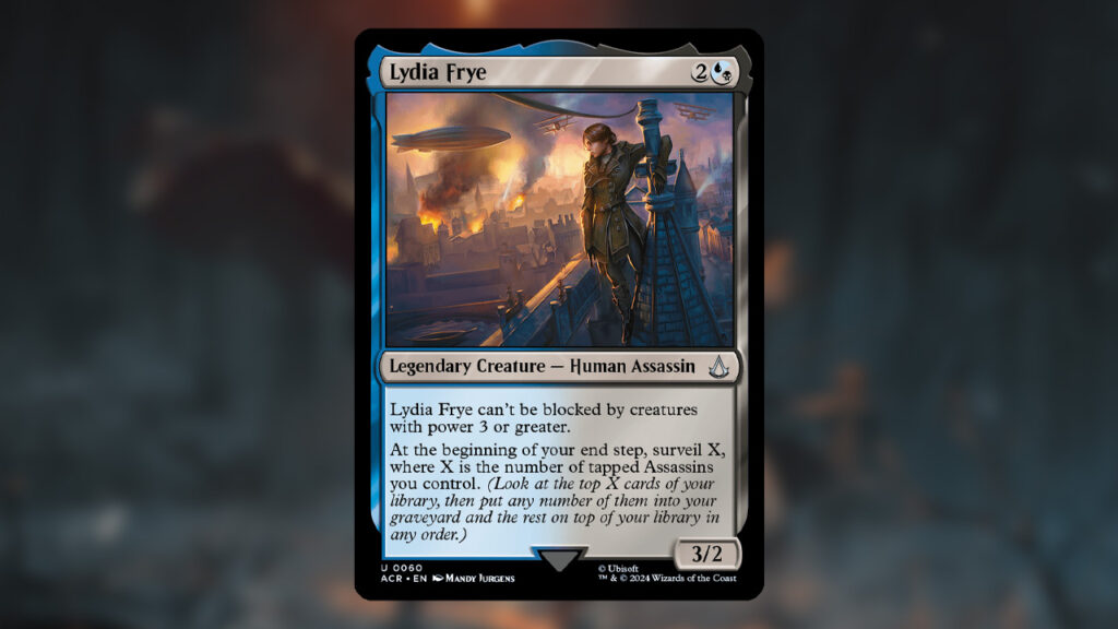 Lydia Frye is a Dimir Assassin that wants to support your other Assassin decks. Surveiling a ton of cards, aside from helping graveyard synergies, can help make sure you’re drawing exactly what you need to. Outside of Assassin Typal decks, however, Lydia Frye is not that interesting.