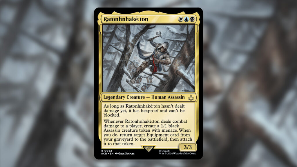 Bizarre name aside, this Assassin is a lot more interesting for multiple formats than Edward Kenway is. Having Hexproof and unblockable until dealing combat damage helps ensure that Ratonknhake:ton gets to create some value even in competitive formats. Offering powerful equipment support, any equipment Commander decks that can run Esper probably want this card. You’ll get both a body and an equipment on it, as long as there is one in your graveyard.