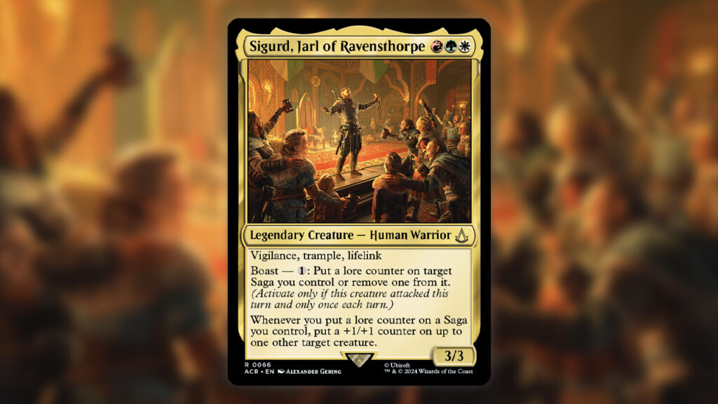 Tom Bombadil fans are getting a huge treat! Synergizing very well with Eivor, Wolf-Kissed, who we’ll be talking about later, Sigurd cares about your Sagas. As long as Sigurd gets to attack, you get to speed up the rate at which your Sagas trigger their abilities. This, in turn, allows you to buff your creatures to maximize the value you receive.