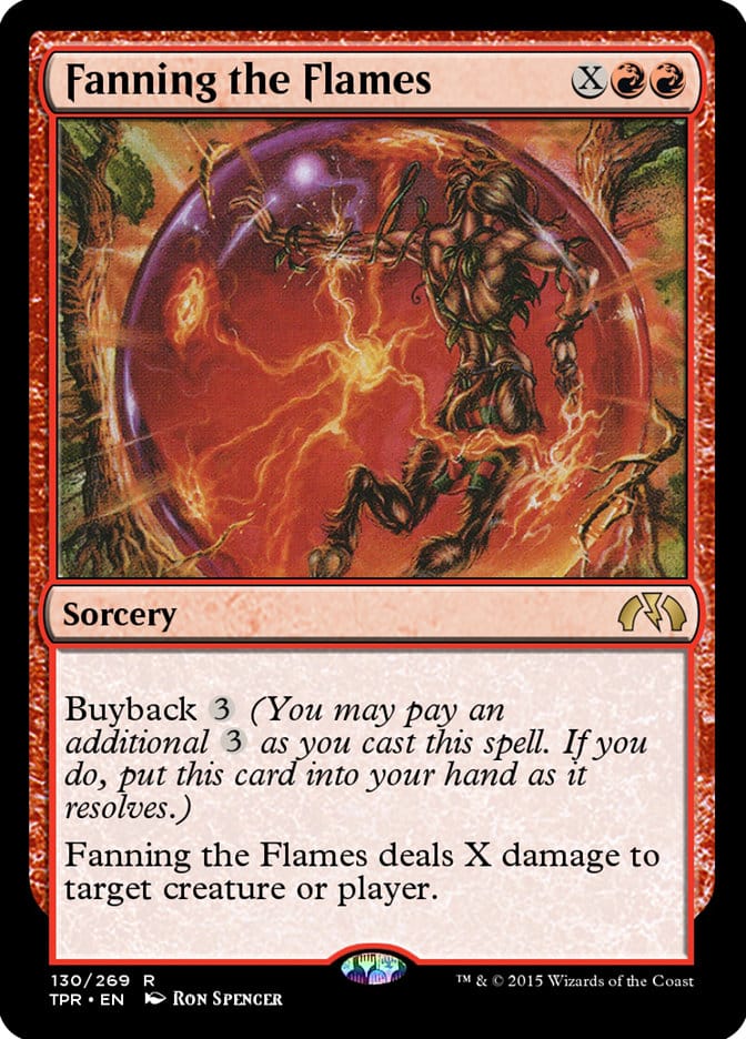 - Cast Fanning the Flame where X is at least 2 and pay its buyback cost. Deal X damage to an opponent and return Fanning the Flames to your hand.