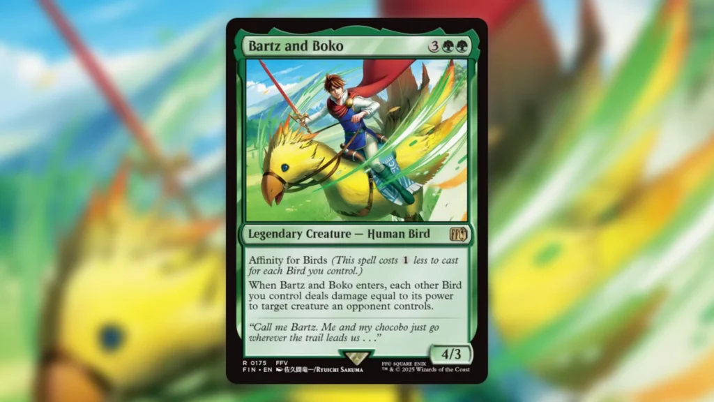 The Final Fantasy preview season has officially begun, and it’s time to dive deep into some fan-favorite characters. During the debut, we saw Traveling Chocobo, a powerful new lands-matter creature with bizarre incidental Bird synergy attached. At the time, this looked like glorified flavor text: the kind of design common in Universes Beyond products. When you factor in Bartz and Boko, however, an MTG card revealed a bit later on, suddenly Bird Typal doesn’t sound so silly.