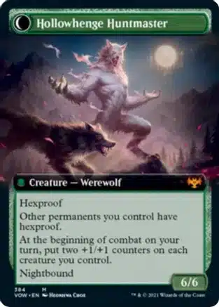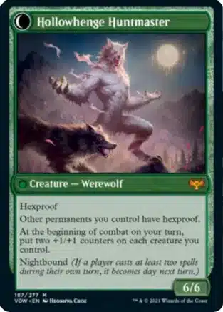 Avabruck Caretaker makes your other creatures bigger every turn. And when she transforms into Hollowhenge Huntmaster, she is even able to protect your other creatures by giving them hexproof. This ability should not be undervalued, as keeping your Tovolar on the battlefield is crucial in gaining card advantage.