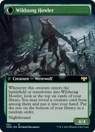 This enchantment plays an important role in the deck. Not only is it a hard-to-deal with anthem effect, (an effect nicknamed after Glorious Anthem), which in this case grants all your Wolves and Werewolves +1/+1, but it can give your tribe trample at instant speed. This warrants you to make more aggressive attacks and easily trigger your Tovolar’s draw ability.