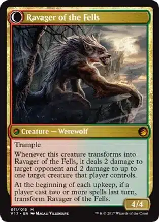 Huntmaster’s ability to create Wolf tokens means you have more creatures to trigger Tovolar’s draw ability. And Ravaer of the Fells is buffed in this deck too. Tovalar’s ability to transform Huntmaster on your upkeep is a great way to kill opposing creatures turn after turn, and clear the way for your Werewolves to attack.