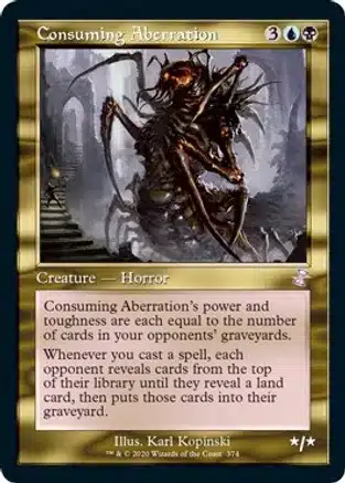 Consuming Aberration is like a second copy of our commander. It gets bigger the more we mill our opponents, and whenever we cast a spell, we mill each opponent until they reveal a land card.