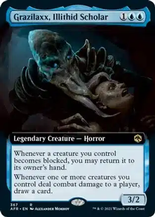 While the main focus of our deck is to mill our opponents, we still need ways to fuel our hand with cards. Grazilaxx helps in both of those departments. It’s a horror that synergizes with Umbris and whenever one or more of our creatures deal combat damage to a player, we draw a card.