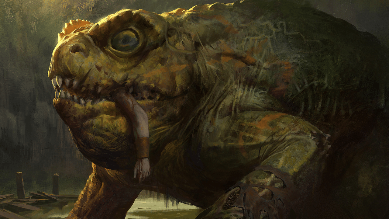 Sometimes you just want to play a big old frog. For those times, we recommend The Gitrog Monster, which is a five mana Black and Green 6/6 with deathtouch. They have a lot of extra text on them too, which is usually a good sign.