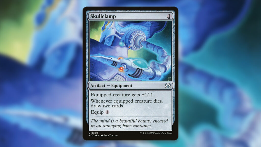 This card is excellent in any Death and Taxes-style deck with Stoneforge Mystic and pairs nicely with token producers such as Sai, Master Thopterist, but the ways to abuse Skullclamp are plentiful. Pair that with its simple one-mana equip cost, and it becomes easy to draw tons of cards. Perhaps too easy, as the card is banned in Modern and Legacy for good reason.