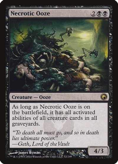 - Cast a reanimation spell targeting Necrotic Ooze. Ooze now has the abilities of both Phyrexian Devourer and Triskelion