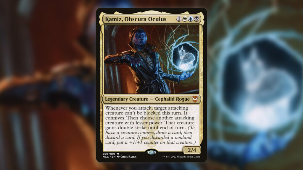 Raffine, Scheming Seer at the helm of Obscura Operation absolutely transforms the deck. This deck is chock full of small creatures that are difficult to block in order to trigger the Connive effect of Kamiz, Obscura Oculist. Like it or not, Raffine’s Connive ability is just better. Not only can Raffine come down quicker than Kamiz, but Raffine benefits more if you end up going wide with unblockable creatures which, in our experience, does happen quite a bit with this deck. Create a massive creature, and find Kamiz, which kind of turns into a Secret Commander, to Double Strike your way to a kill out of nowhere.