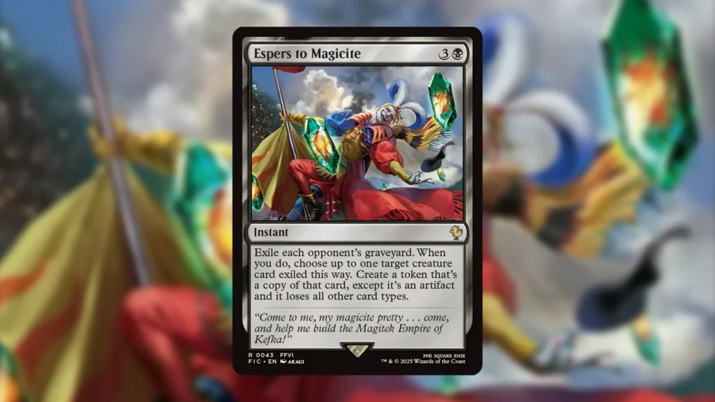 Unlike many of the cards in the MTG Final Fantasy Commander set, Espers to Magicite can fit in all kinds of different decks. The card will have additional synergy in decks that don’t care about their grave and otherwise want to recur gigantic creatures. That said, as long as you’re in black, Espers to Magicite won’t steer you wrong.