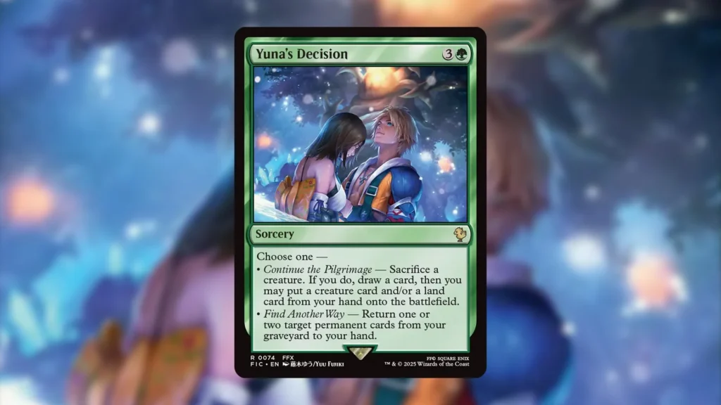 Yuna’s Decision can be found in the Final Fantasy X Commander precon, Counter Blitz.