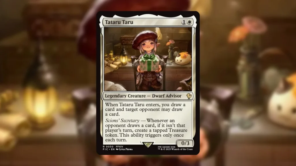 If you’re interested in finding Tataru Taru, they appear in the Final Fantasy XIV Commander precon, Scions & Spellcraft.