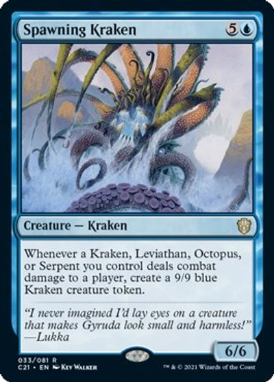 Spawning Kraken was included in the Quantum Quandrix deck because copying 9/9 tokens is extremely scary. And while this card works great with Parallel Lives effects such as the face commander the deck, [tooltipsAdrix and Nev, Tiwncasters, Spawning Kraken actually has a better home.