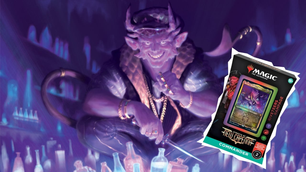 Riveteer Rampage is a black, red, and green Commander deck released alongside Streets of New Capenna. It revolves around the new mechanic, blitz, which plays creatures with powerful attack abilities and death triggers. The deck contains many new-to-Commander exclusive cards, plus several much-needed reprints.