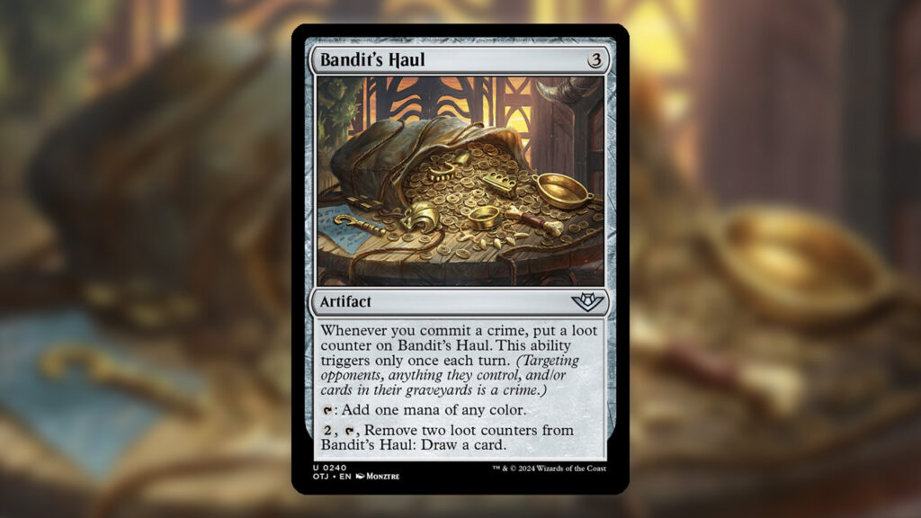 Where Bounty Board failed, Bandit’s Haul clearly succeeds. Doing just about anything is a crime so you will easily get a loot counter here and there. On turns you need the mana, it’s a rock. Other turns you get to draw a card. Simple, effective, minimal hoops to jump through and it has all sorts of synergy with other deck types too whether artifact or counter based. This card will definitely see extended play in many decks and is completely functional here as well.