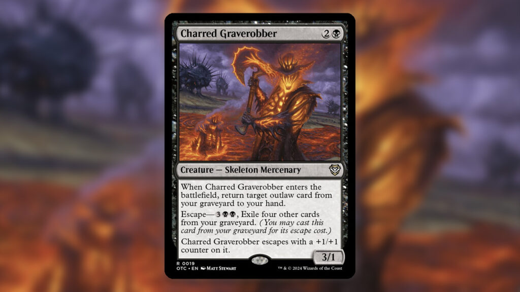 Another card that few would call exciting, Charred Graverobber is a reasonably costed Skeleton Mercenary that gives you recursion for your best Outlaws. With Escape, though, you can continuously recur your Outlaws. Given that the deck can generate a lot of Treasure, you will need mana sinks and the Graverobber performs that function. As a 4/2 when it escapes, Charred Graverobber is not a wimp and will give you either a decent blocker or an attacker with bite. It’s a solid card that the deck appreciates having.