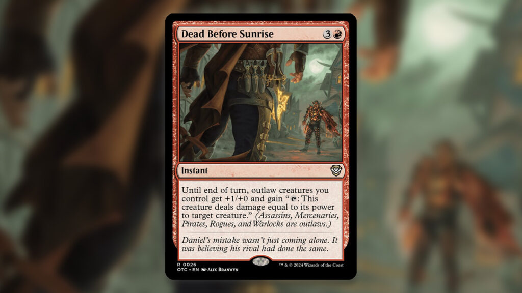 This is another card that shows the potential for Vihaan, Angelic Sell-Sword and other cards that might seem a little out of place at first. Vigilance is the keyword that completely activates Dead Before Sunrise as a one sided board wipe. Tokens also go very wide here. Dead is a surprisingly decent card because it can double the damage of a 1/1 token but also be used to clear problem creatures and blockers. This card will likely be underrated, give it some consideration for an outlaw heavy token deck.