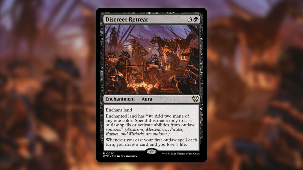 Black has a long history with auras that go on lands. Evil Presence was in Alpha and there have been many other cards to follow like Blight and Underworld Connections. The type of card is definitely not that rare, all told. But giving black a mana ramp effect, on an aura, is pretty rare. However, the effect more or less mimics Phyrexian Arena and the restriction on the mana granted is enough to limit the play of this card. It is worth noting that it is two mana to cast a changeling. Discreet Retreat is an interesting card from a design standpoint but not that powerful for four mana.