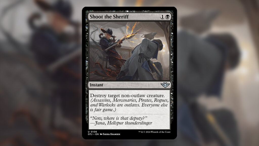 Rounding out removal, Shoot the Sheriff is a relatively no fuss spell. Within the set it may be difficult to find targets, but in Commander at-large, this does destroy most creatures for only two mana.