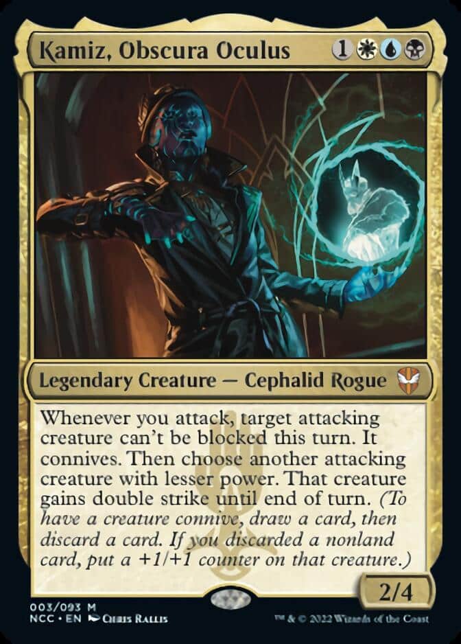 The face commander is Kamiz, Obscura Oculus, with Tivit, Seller of Secrets as a back up. The overall theme of the deck with Kamiz is utilizing small creatures to connive, and punch in with a bunch of small damage with interesting attack / damage triggers. Tivit, on the other hand, takes advantage of the voting mechanic, which is a bit of a polar opposite.