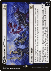 According to some financial outlets, the most significant financial increase seen week over week was for Invasion of Theros. This card has quite a strong application in EDH, capable of searching your library for an Aura, God, or Demigod card while presenting a potential significant threat.