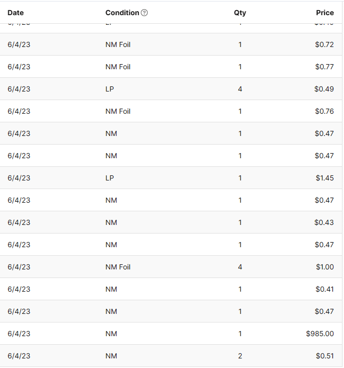 I hope it doesn’t have to be said at this point, but just in case it does, do not buy these cards for their current market values. They are absurdly inflated thanks to these bizarre sales. If you want these cards, buy them instead for what they’re selling for (outside of the $985 sale, of course). This is a fantastic example why players should research what is causing MTG market spikes instead of blindly buying on a market increase.