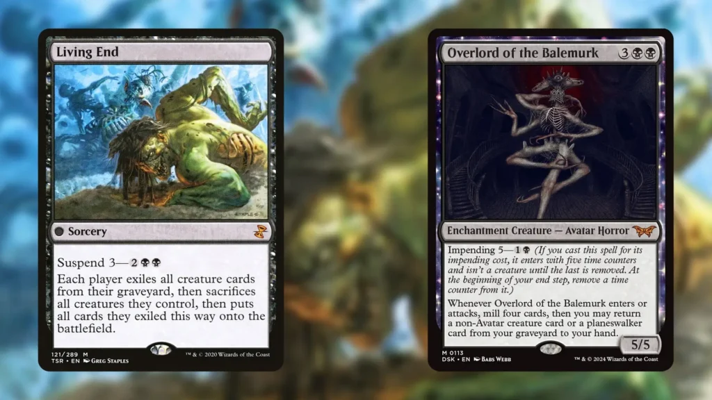 Overlord of the Balemurk, for example, is a really odd inclusion that doesn’t appear in typical Living End lists. While Overlord of the Balemurk does make a lot of sense in this deck, two mana for a mill effect is considered expensive compared to your other options. That, combined with Overlord of the Balemurk being a counterable spell rather than a Cycling effect, has scared players away up to this point.