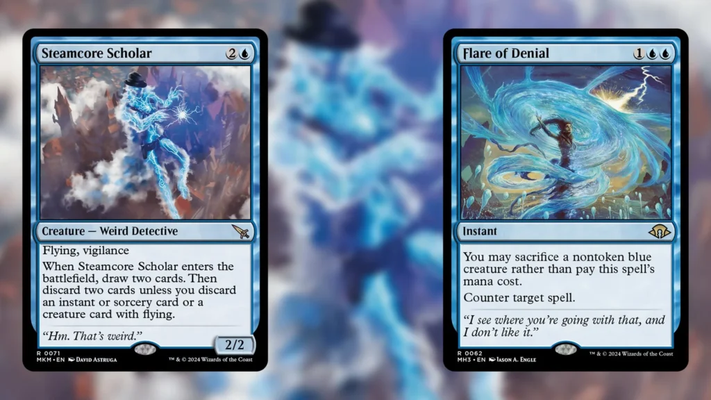 The bizarre free counterspell is coupled with Steamcore Scholar, another weird addition that goes against typical Living End cards. It does synergize well with the other oddities in this list, however, since the card is capable of becoming sacrifice fodder for Flare of Denial, digs towards Shardless Agent, and can get Living End into the graveyard for Halo Forager.