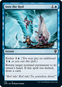 Additionally, we have a few different bounce spells that we can utilize to keep the way clear for our creatures to get in for damage. Fading Hope is a new spell that lets us scry 1 if the target of the spell is 2 mana value or less. This is very helpful because if our opponent has a turn 1 creature play, we can bounce it and scry to help set up Delver flipping. Into the Roil is also good in that it can draw us a card when we kick it, which can help fuel our hand.