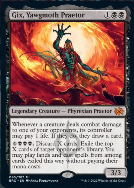 As far as Gix goes as an MTG card, it is really interesting. This seems suited to an aggressively-sided midrange deck that can get a lot of damage in early-game and build up to the game-ending activated ability that Gix offers. Admittedly, this comes to mind as a sideboard option for Rakdos Sacrifice decks. It will be interesting to see how Gix impacts formats as The Brothers’ War is released.