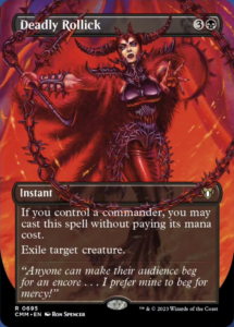 Well, thanks to early card previews from Commander Masters, it appears that one of Commander’s most infamous cycles is finally seeing a much-needed reprint. Honestly, we probably should’ve gotten a second copy of this cycle years ago but, reprinting Deadly Rollick now is a great move from Wizards of the Coast.